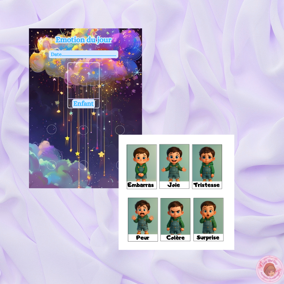 🌈 Avec ses couleurs douces et ses étoiles lumineuses, ce tableau transforme l’apprentissage des émotions en un moment ludique, rassurant et bienveillant.